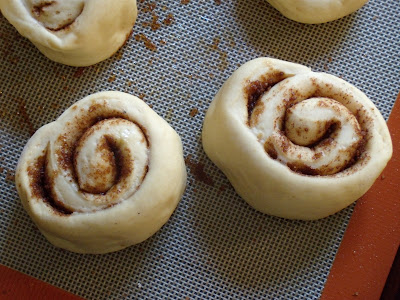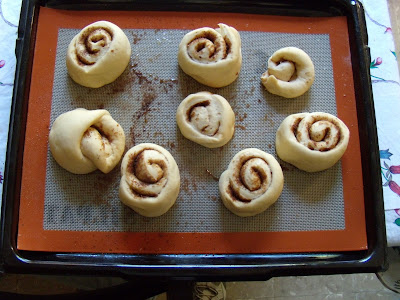 Estirar la masa hasta formar un rectángulo. Espolvorear la canela azucarada y enrollar la masa como un cigarrillo, sin presionar demasiado o los bollos quedaran duros en vez de esponjosos.