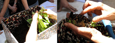 Engràcia nos trajo semillas y plantel para aplicar en casa las cosas que vimos en el taller.