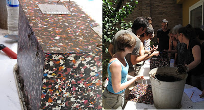 Aprovechando material de los Puntos de Reciclaje (Deixalleries o Punts verds), se pueden construir recipientes para platar todo tipo de hortalizas en un balcón, Engràcia es toda una McGyver en el asunto.