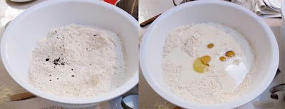 Una masa con diferentes empastes, leche, mantequilla, huevos, ázucar.
