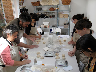 Después le llegó el turno a una masa preparada con biga de espelta molida muy gruesamente, soja, y manteca ibérica. Y todos a formar panecillos