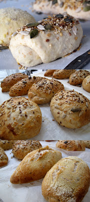 Finalmente los panecillos los decoramos con semolina y semillas. La luz primaveral que nos regaló el domingto, los hacían más bonitos todavía.